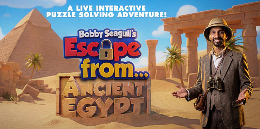 Perfect for curious kids and adventurous grown-ups alike, Bobby Seagull’s Escape from Ancient Egypt blends history, maths and storytelling into a fun-filled theatrical quest. Will you help Bobby solve the riddles… and escape the pyramid before time runs out?